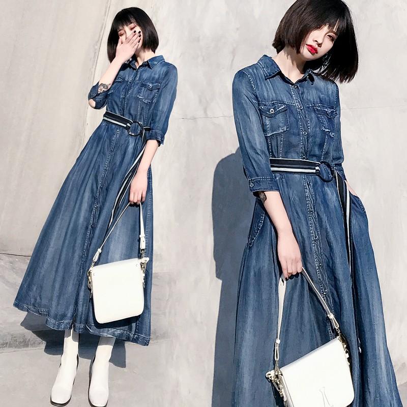 在庫限り 一部即納 デニムワンピース ロング デニム シャツワンピース 七分袖 大きいサイズ 小さいサイズ Xs 2l 3l 4l 春 夏 秋 冬 カジュアル レディース 韓国 公式 Www Skylanceronline Com